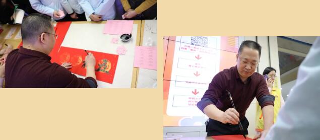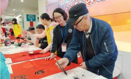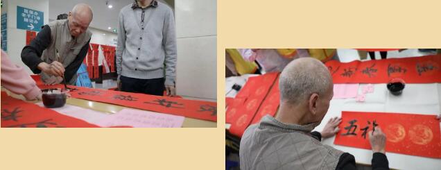 書法家們早早就來到現(xiàn)場,盡情揮毫潑墨,紅紙黑字、行云流水、妙筆生花。一副副春聯(lián)寄托著群眾和員工們對新一年的美好憧憬和祝福。活動(dòng)帶來了喜慶的氣氛,受到了群眾熱烈歡迎?,F(xiàn)場一位杜老先生還自發(fā)加入了潑墨的隊(duì)伍中。