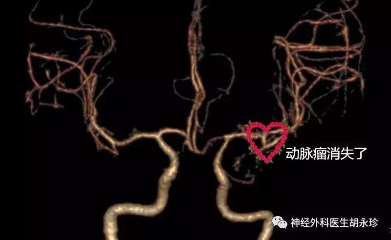 手術(shù)過程十分順利,術(shù)中將動脈瘤安全夾閉,并將血腫予以清除,術(shù)后恢復(fù)良好,復(fù)查血管造影檢查可見動脈瘤夾閉完全,無腦梗死發(fā)生,患者及家屬很是高興。