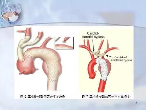 針對鄭老伯的病變特點(diǎn),醫(yī)生的初步方案是:先行右頸總動脈-左頸總動脈、右頸總動脈-左鎖骨下動脈人工血管旁路,并結(jié)扎左頸總動脈近端開口,彈簧圈栓塞左鎖骨下動脈開口,這樣左頸總及左鎖骨下動脈血供全部右無名動脈、右頸總動脈供給,再緊貼無名動脈行主動脈覆膜支架植入術(shù),徹底隔絕動脈瘤及夾層破口!
