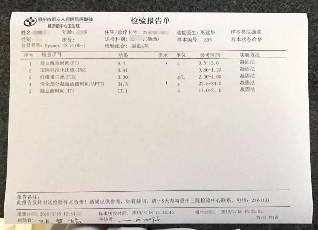 惠州三院醫(yī)聯(lián)體成員單位-橫瀝鎮(zhèn)中心衛(wèi)生院自主打印的來自醫(yī)聯(lián)體區(qū)域檢驗中心的首份檢驗報告