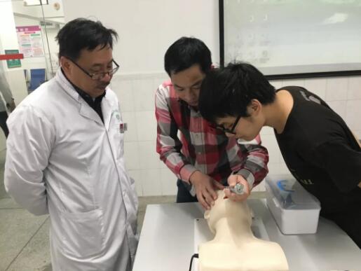 惠州三院急診科林月雄醫(yī)生(中)示范操作氣管插管