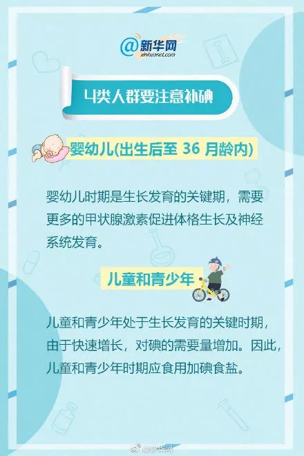 3.長期生活在重度缺碘地區(qū)的人群,不宜過高過快的補碘,否則患碘性甲亢或其他相關甲狀腺疾病的危險性增高。
