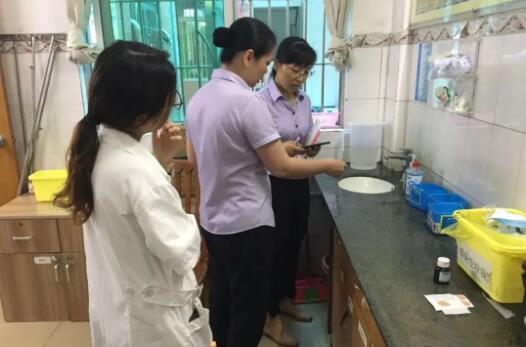 惠州三院院感科劉惠芬主管(中)現(xiàn)場督導(dǎo)檢查院感工作