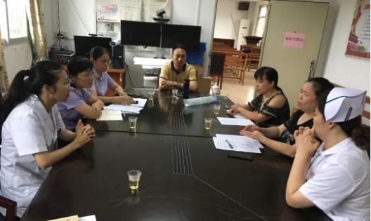 橫瀝鎮(zhèn)中心衛(wèi)生院負責人王湘江同志(中)召開督導(dǎo)檢查反饋會