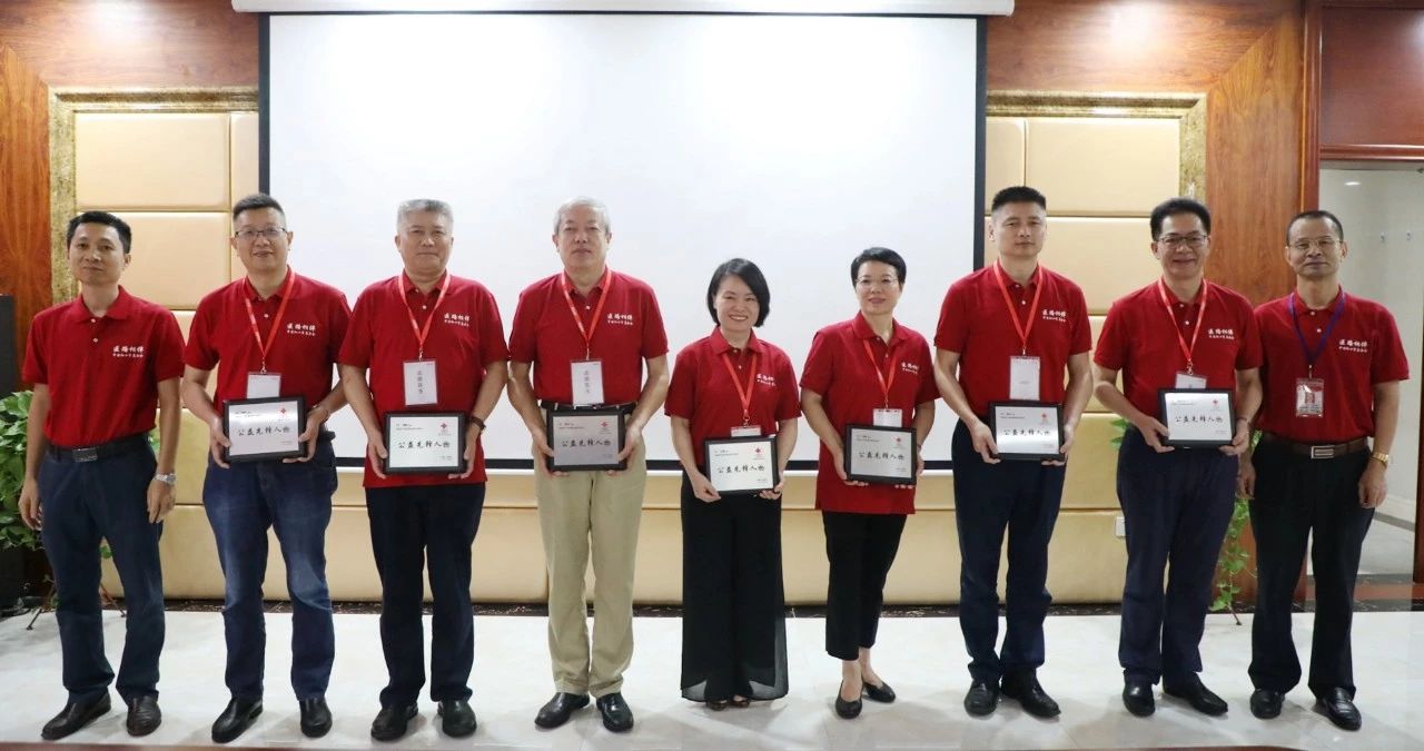 惠城區(qū)衛(wèi)健局副局長(zhǎng)詹阮,惠州三院黨委書(shū)記、紅十字會(huì)會(huì)長(zhǎng)鄧漢東代表中國(guó)紅十字基金會(huì),向省內(nèi)受邀專(zhuān)家授予“公益先鋒人物”榮譽(yù)牌匾