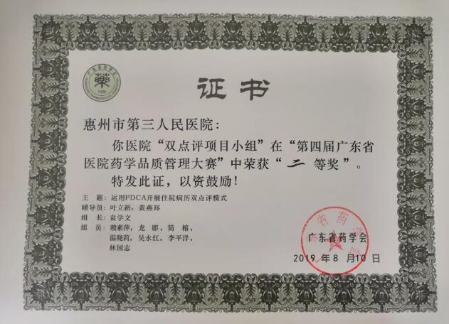 【三院喜訊】惠州三院藥學團隊在廣東省第四屆藥學品質(zhì)管理大賽中喜獲佳績!