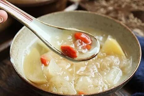 材料:銀耳30克,雪梨1個,枸杞子15克,冰糖適量。