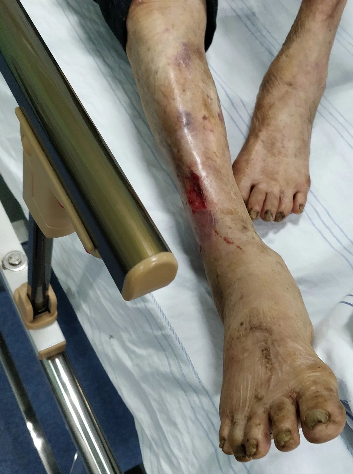 結(jié)果異物未排出,阿婆的呼吸困難癥狀也沒有緩解,還導(dǎo)致腿上多處皮膚挫裂傷,給患者帶來極大的痛苦。家屬這才慌了,趕緊撥打了120急救電話。
