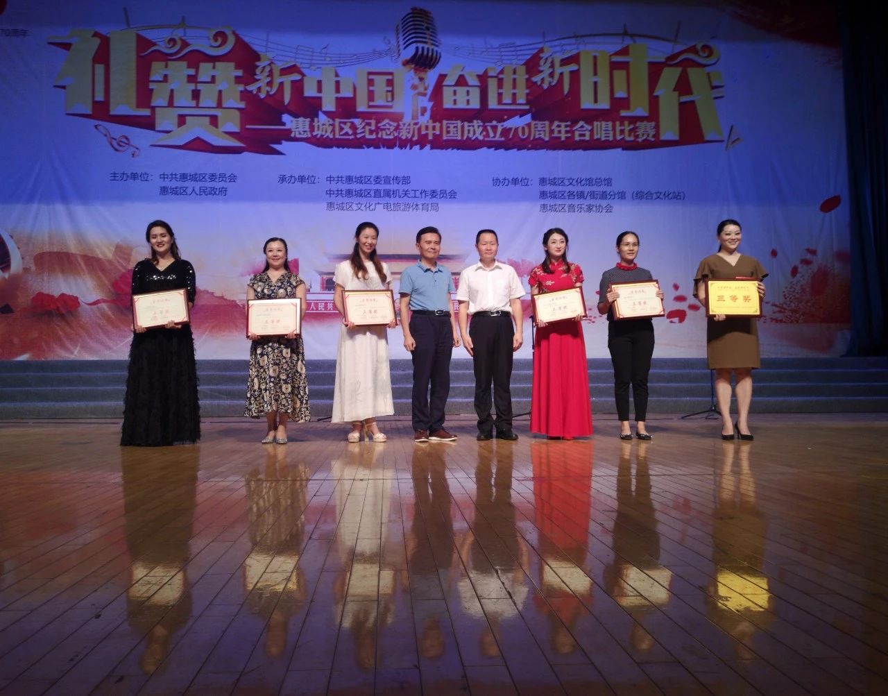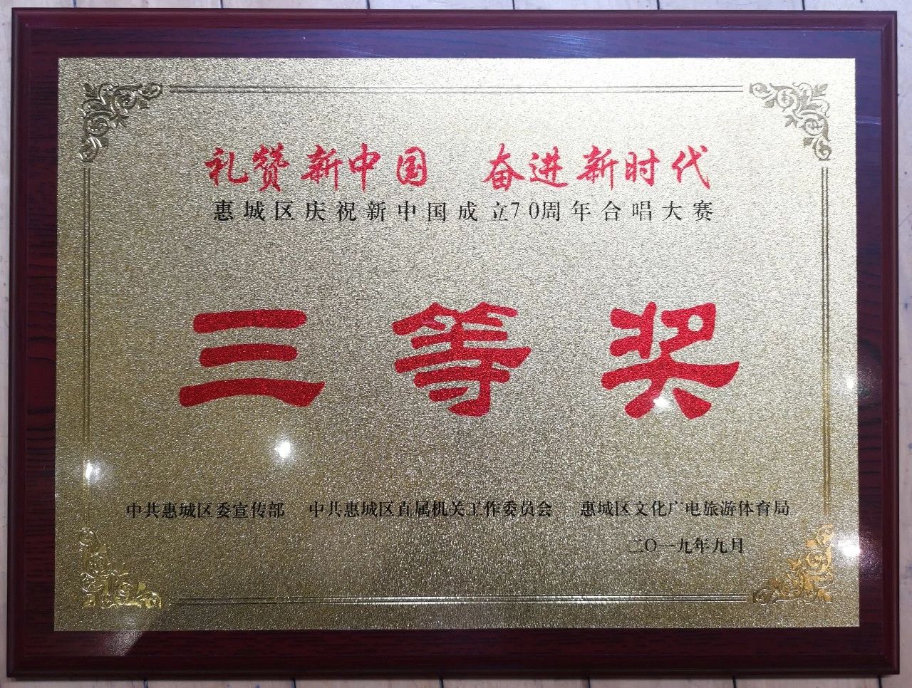 為喜迎新中國成立70周年,熱情謳歌新中國70年來的光輝歷程和偉大成就,923日下午,惠城區(qū)舉行了“禮贊新中國 奮進(jìn)新時(shí)代”慶祝新中國成立70周年合唱比賽。來自惠城區(qū)各鎮(zhèn)、街道及區(qū)直單位共19支隊(duì)伍參賽,惠州三院合唱團(tuán)憑借出色的表現(xiàn)榮獲三等獎(jiǎng)。