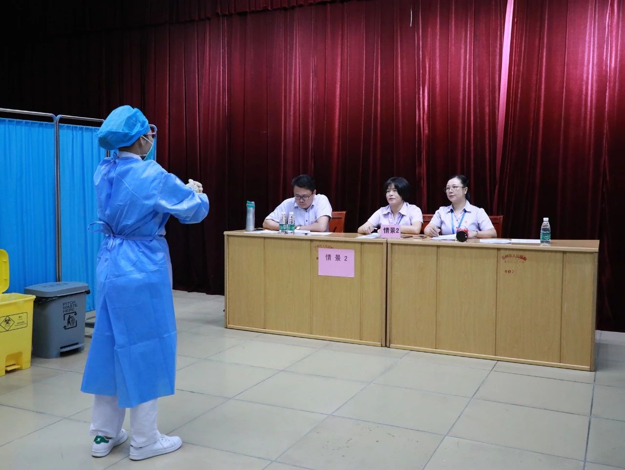 根據(jù)事先設(shè)定的情景,由參賽選手自行選擇防護(hù)用品,并在規(guī)定時(shí)間內(nèi)完成個(gè)人防護(hù)用品的穿脫。參賽選手們個(gè)個(gè)精神飽滿,沉著冷靜應(yīng)對(duì),將醫(yī)院感染預(yù)防與控制理念融入到臨床實(shí)際情景之中,充分展示了個(gè)人及團(tuán)隊(duì)的良好形象及風(fēng)采。