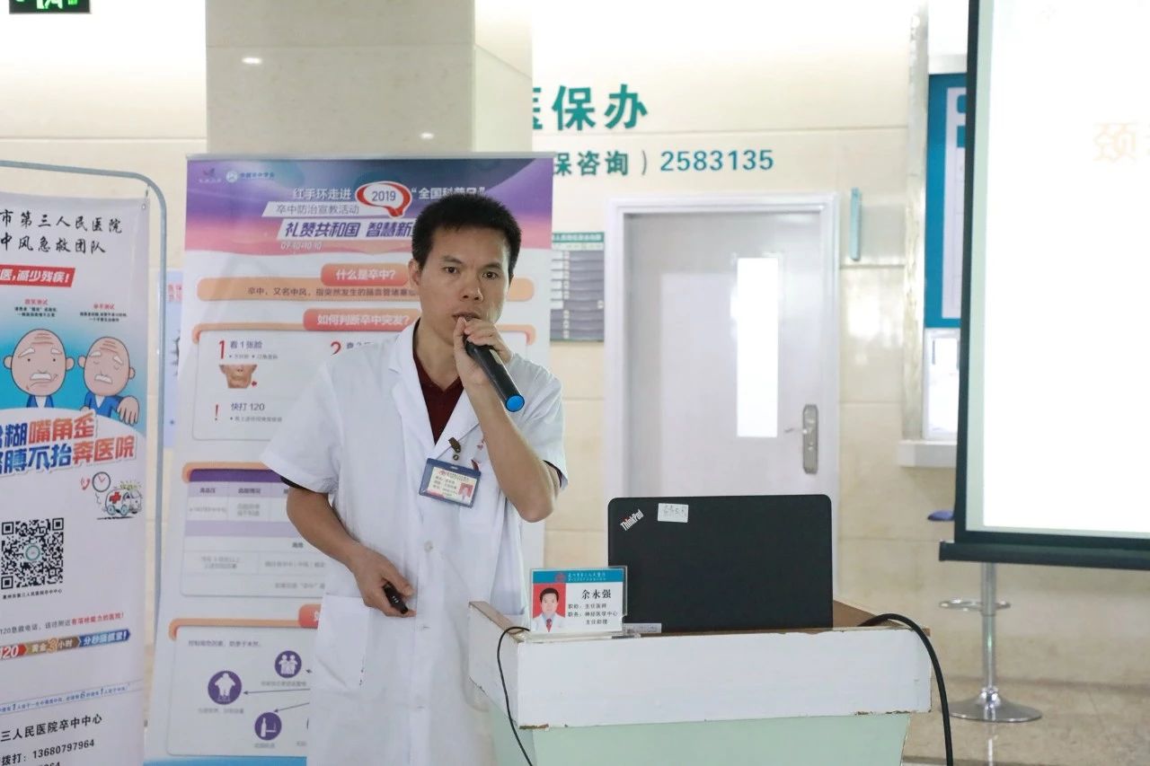 為貫徹落實《健康中國行動(2019-2030年)》和《國家衛(wèi)生健康委疾控局關(guān)于開展2019年“世界卒中日”宣傳活動的通知》等文件要求,2019年10月29日上午,惠州市第三人民醫(yī)院神經(jīng)內(nèi)科一區(qū)在本部門診前廣場舉辦第14個“世界卒中日”義診及宣教活動。