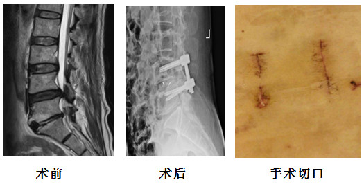 案例一:黃某,女性,56歲,腰痛10余年,診斷腰5雙側(cè)峽部裂并I°滑脫,行腰椎微創(chuàng)手術(shù)治療,出血約50ml。術(shù)后第一天戴腰圍下地活動(dòng),術(shù)后第五天出院,此前的腰痛癥狀基本緩解,直夸這項(xiàng)技術(shù)好神奇。
