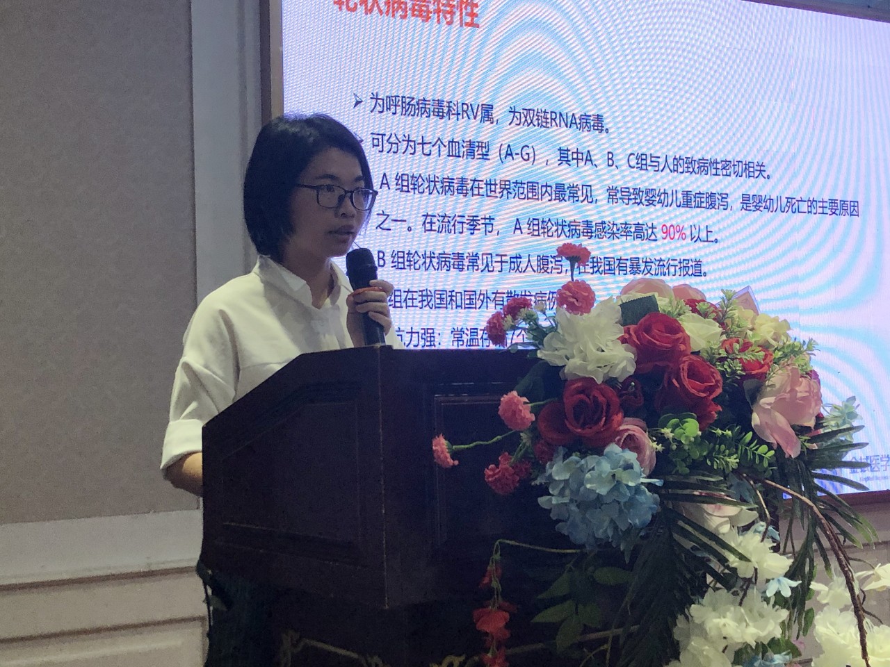 金域檢驗(yàn)梁碧嬋醫(yī)學(xué)經(jīng)理以《病毒感染性腹瀉》為題,分別介紹了輪狀病毒感染、腺病毒感染、諾如病毒感染等病毒感染性腹瀉相關(guān)流行病學(xué)特點(diǎn),實(shí)驗(yàn)室檢查核酸定性檢測(cè)方法,標(biāo)本采集、保存條件等。