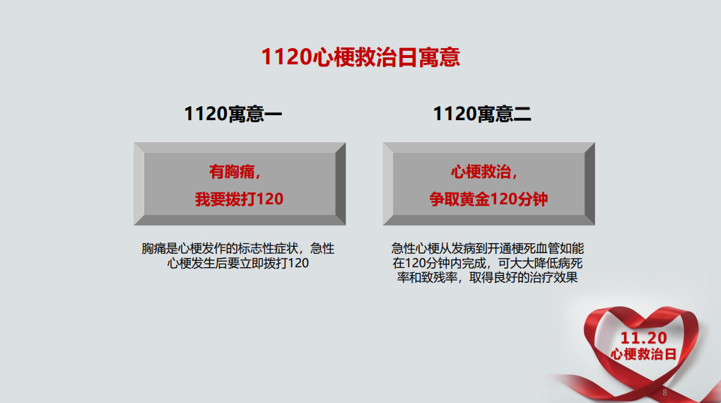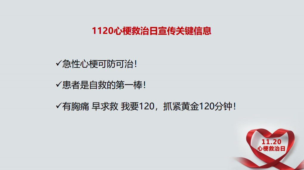 通過多種形式的健康教育活動(dòng),擴(kuò)大了“1120中國心梗救治日”的社會(huì)影響和傳播范圍,讓兩個(gè)“120”牢記在群眾心中,幫助群眾科學(xué)理性認(rèn)識(shí)心梗、了解心梗!