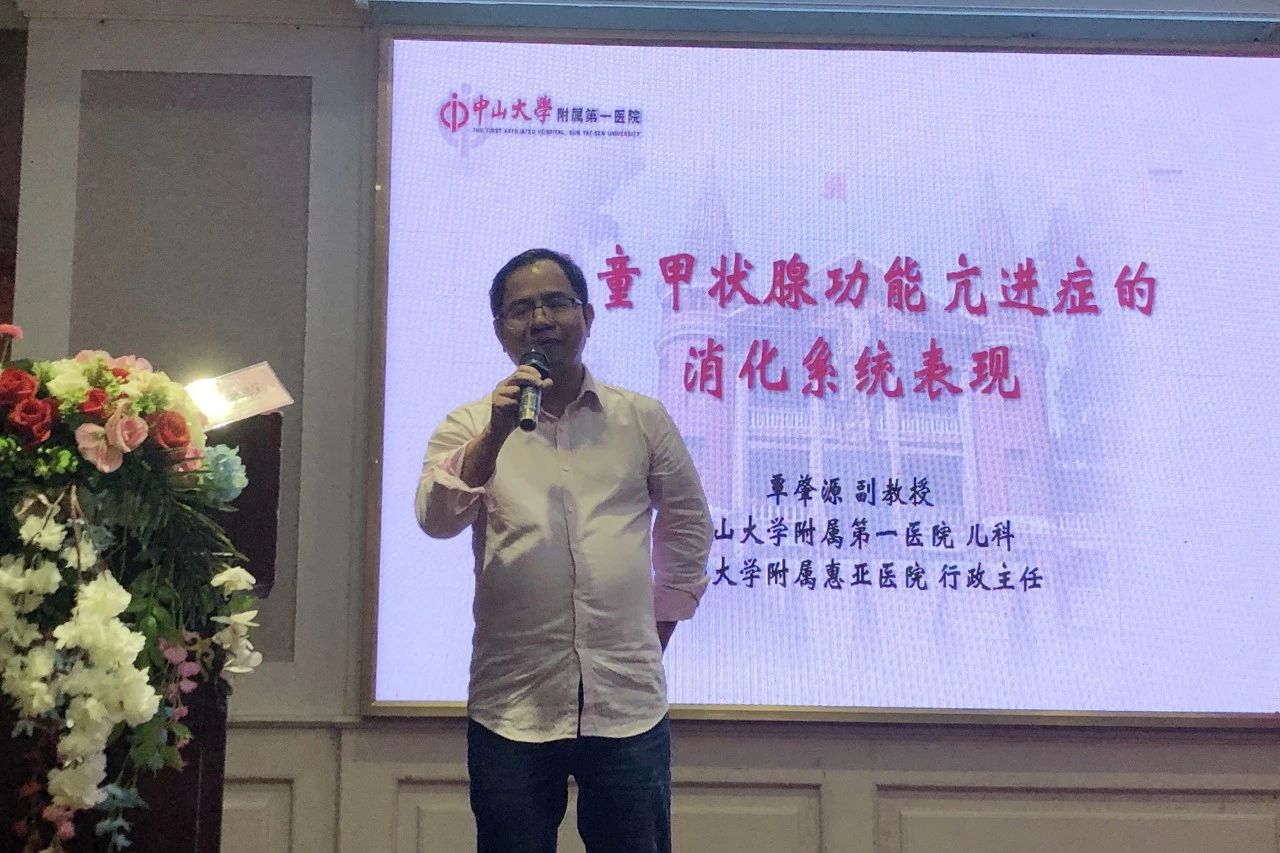 中山大學(xué)附屬第一醫(yī)院惠亞醫(yī)院覃肇源教授以《兒童甲狀腺功能亢進(jìn)癥的消化系統(tǒng)表現(xiàn)》為題,深入淺出地講解了甲狀腺功能亢進(jìn)對(duì)消化系統(tǒng)影響及臨床表現(xiàn),抗甲亢藥物消化系統(tǒng)副作用,還分享了他在兒童甲亢的用藥經(jīng)驗(yàn)。