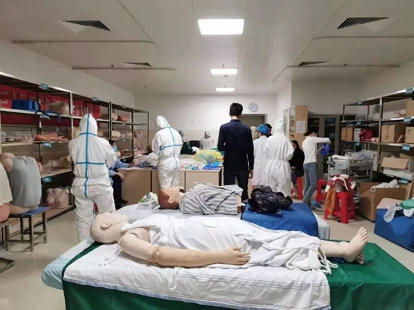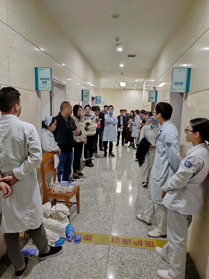 為做好新型冠狀病毒感染的肺炎防治相關工作,做到早發(fā)現(xiàn)、早診斷、早隔離、早治療,進一步提升新型冠狀病毒感染肺炎的防治水平,急診醫(yī)學中心積極開展“群體傷救治”、“傳染病救治”應急演練,全員再鞏固練習穿脫防護服并逐一考核,互相細致審查每一步驟、規(guī)范有序操作,不留一絲漏洞。