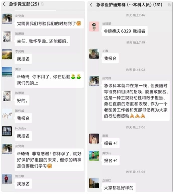 連身懷六甲的黨員陳琳琦、下鄉(xiāng)扶貧的黨員鄒云良也毫不遲疑堅決要求加入志愿者行列。正在休產(chǎn)假的急診支部支部委員、護(hù)士長丘運紅,得知這個工作需求后,主動提出申請,提前結(jié)束產(chǎn)假,回到了工作崗位,與同事們并肩作戰(zhàn)。