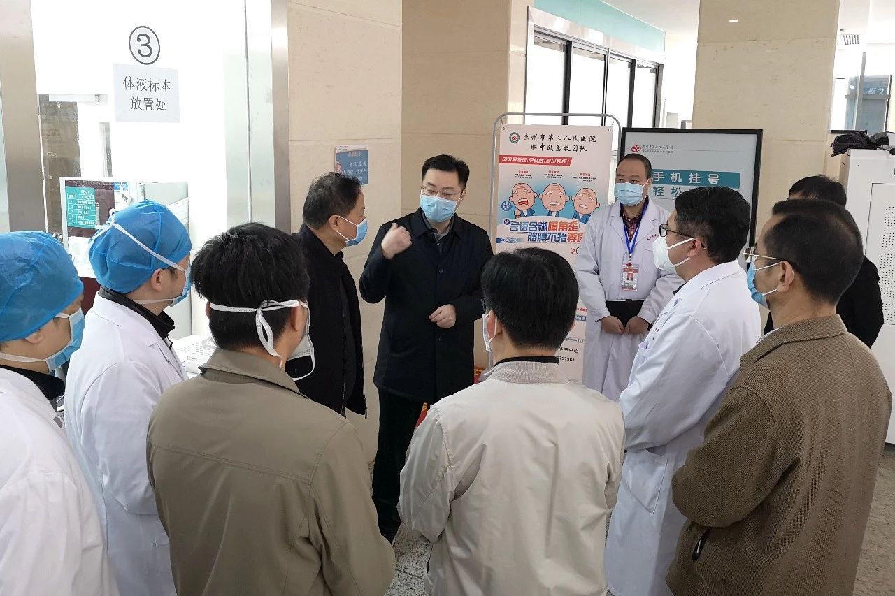 2020年2月3日上午,惠城區(qū)人民政府翟樹(shù)宇區(qū)長(zhǎng)、陳廣文副區(qū)長(zhǎng)到惠州市第三人民醫(yī)院指導(dǎo)新型冠狀病毒感染肺炎疫情防控工作,惠城區(qū)衛(wèi)生健康局鄒忠平局長(zhǎng)、惠州三院院長(zhǎng)馬顯力、黨委書(shū)記鄧漢東等領(lǐng)導(dǎo)班子成員及相關(guān)職能科室負(fù)責(zé)人陪同。
