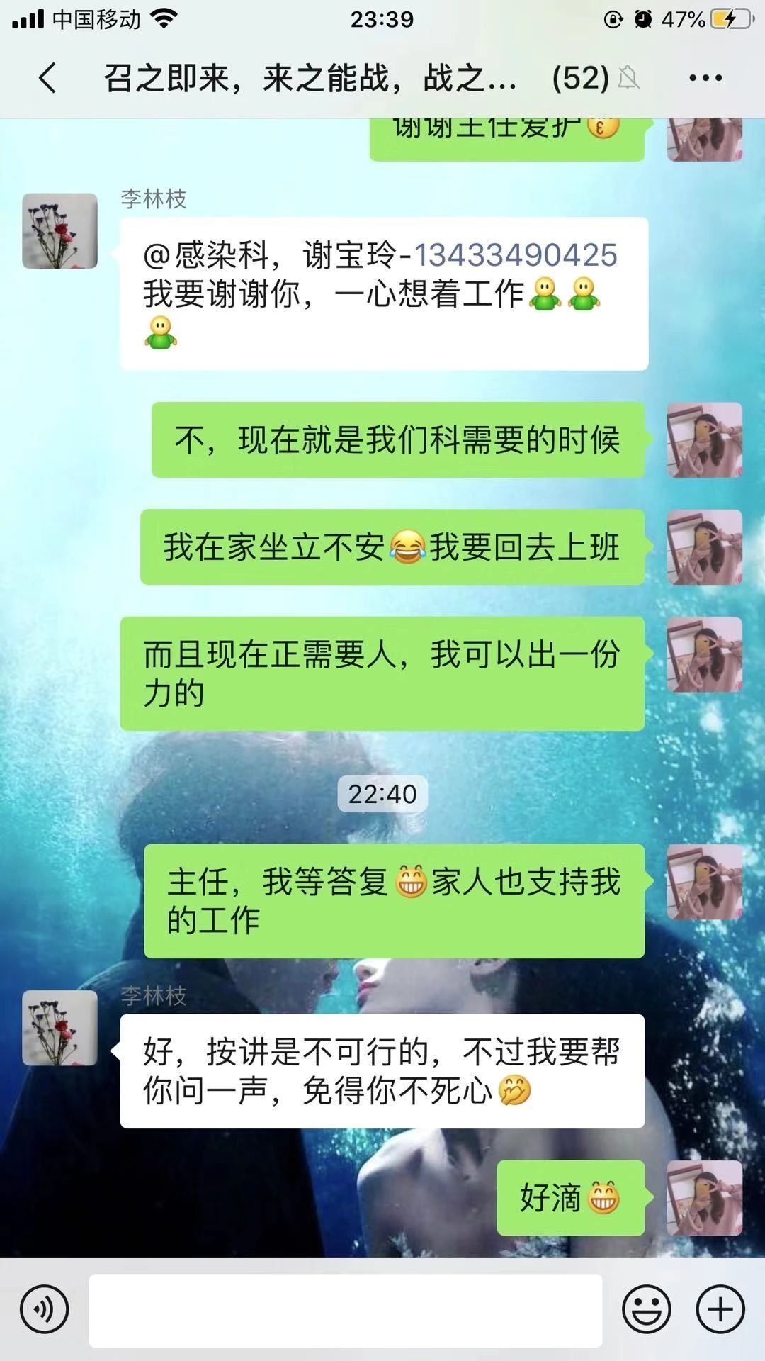 “科內(nèi)米蓮玉和黃茂芳兩名護(hù)士已連續(xù)感冒咳嗽好幾天,但依然堅(jiān)守崗位;謝寶玲懷孕被規(guī)勸回家休息,但她知道目前科里正是需要人的時(shí)候,一再申請回來上班;有天接收了三例高危的發(fā)熱病人,原本不是張艷的班,但張艷毅然地站出來說,你們不要進(jìn)去,我進(jìn)去,我經(jīng)驗(yàn)比較豐富。其他護(hù)士也一樣,舍小家為大家,加班加點(diǎn),都有個(gè)拼命勁。”