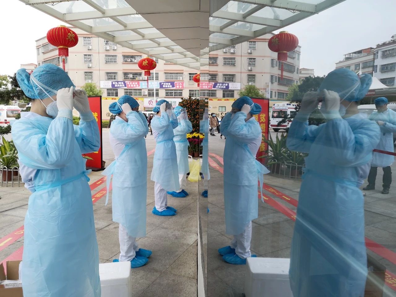 而四組采樣人員卻穿著防護(hù)服進(jìn)行了近4個小時的采樣,但護(hù)士們忘記了“全副武裝”的難受,直至汗水模糊了視線才稍作停頓,擦干后接著干!其中一位采樣的護(hù)士說:“有人需要我們,對于那些在家承受內(nèi)心‘煎熬’的人,這點(diǎn)身體上的不適又算什么呢?”
