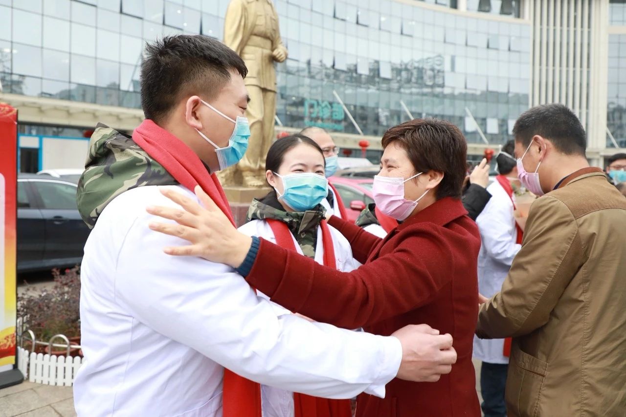 壯行的人群中,隊(duì)員科室同事們的鼓勁和擁抱溫暖而充滿力量!