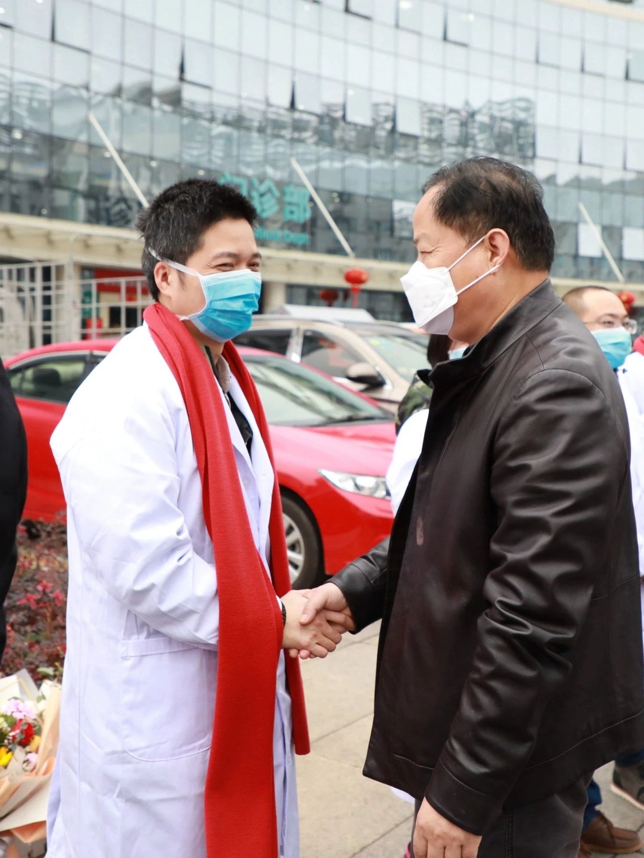 “荊楚抗疫穿金甲,誓滅‘新冠’把家還!大家一起努力,我們將在不同的戰(zhàn)場打敗共同的敵人!”道別時(shí),隊(duì)員徐耀坤和送別的同事互相打氣。