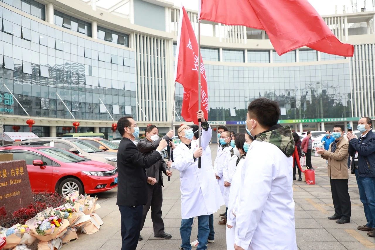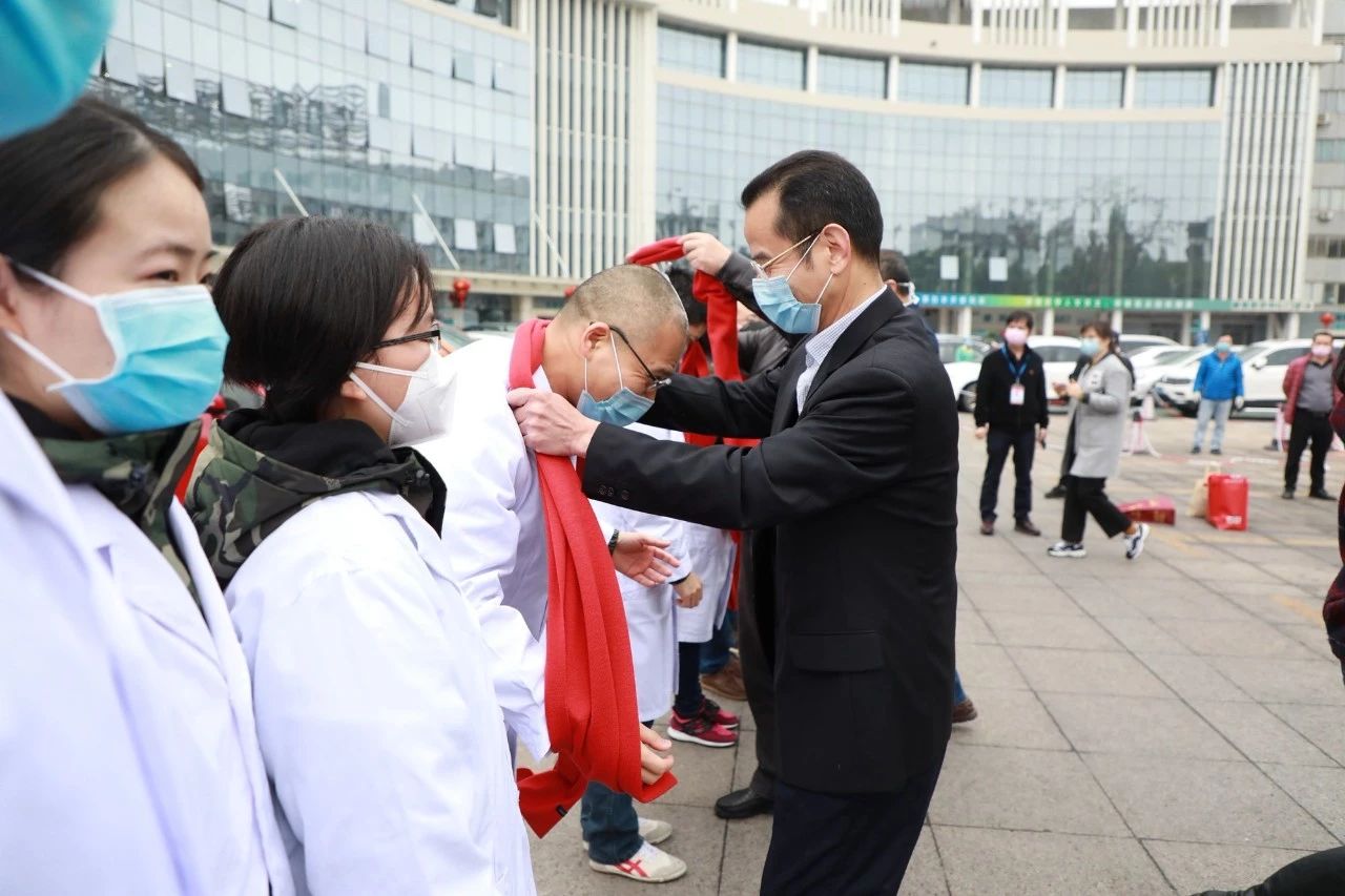 “支援湖北具有重要意義,湖北勝則全國勝!你們是政治過硬、業(yè)務(wù)過硬的優(yōu)秀代表。到達(dá)一線后,既要發(fā)揮專業(yè)特長全力抗擊疫情,也要保重身體,平安而歸。我們將確保后方無憂,請(qǐng)大家放心。”出征儀式上,李貽偉書記叮囑和勉勵(lì)醫(yī)療隊(duì)員,期待大家凱旋。