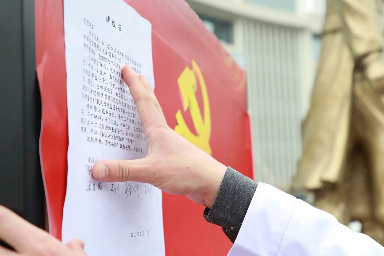 “我們將聽黨指揮,堅(jiān)定信念,牢記使命,服從安排,遵守紀(jì)律,不計(jì)得失,不怕犧牲,精誠團(tuán)結(jié),沖鋒在前,眾志成城保衛(wèi)民眾健康,齊心協(xié)力打贏疫情防控阻擊戰(zhàn)!戰(zhàn)必用我,用我必勝!”儀式上,我院醫(yī)療隊(duì)員們遞上《請(qǐng)戰(zhàn)書》并莊嚴(yán)宣誓。8名隊(duì)員中,有黨員4名、積極分子4名。在疫情爆發(fā)初期,他們就主動(dòng)申請(qǐng)加入醫(yī)院防控疫情黨員突擊隊(duì),表達(dá)了抗擊疫情的堅(jiān)定決心。隊(duì)員們紛紛表示,已經(jīng)做好了到前線抗疫的充分準(zhǔn)備,絕不辜負(fù)組織的重托!