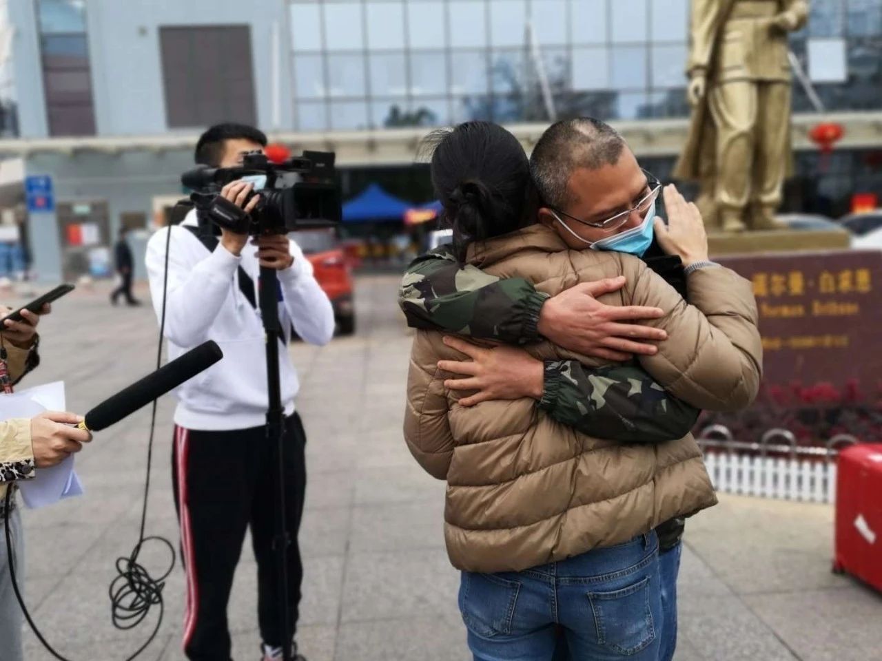 醫(yī)療隊(duì)員陳釗成醫(yī)生的妻子也是醫(yī)務(wù)工作者,對(duì)他的工作很是理解和支持。臨行前,他給妻子一個(gè)大大的擁抱,瞬間眼淚奪眶而出。