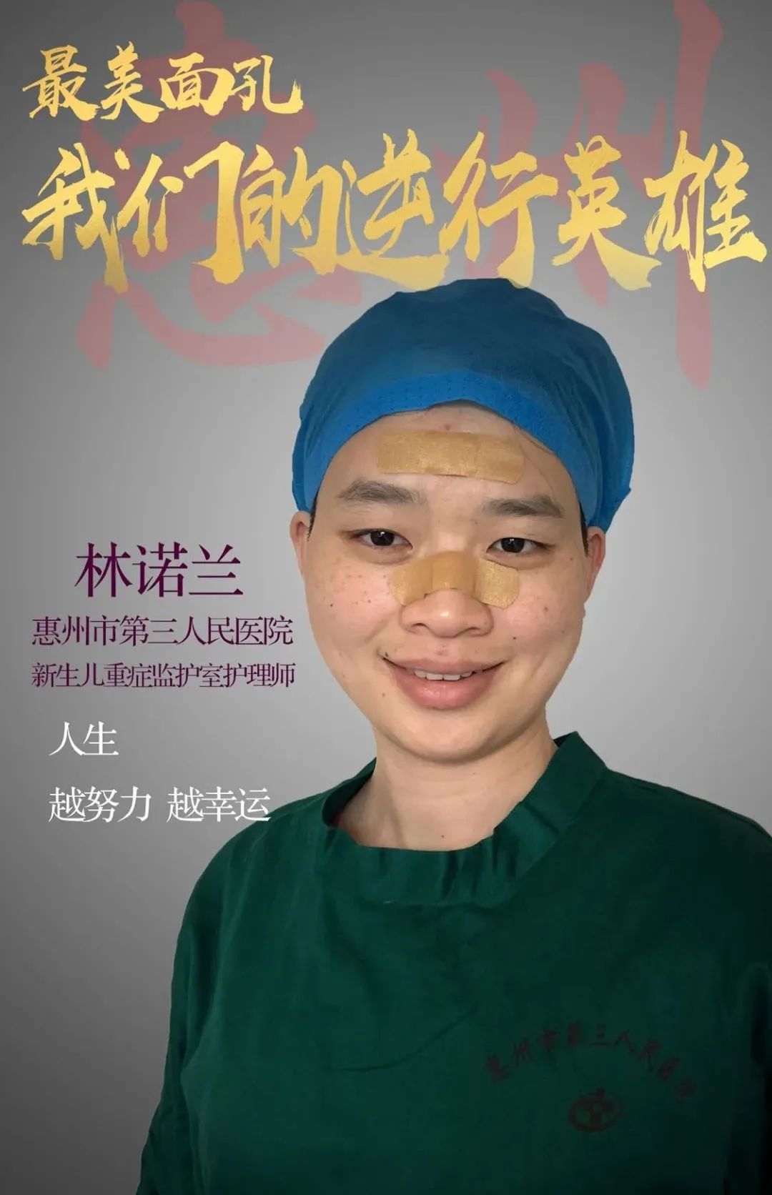 林諾蘭,女,32歲,漢族,大學(xué)本科學(xué)歷,護(hù)理師,中共黨員,惠州市第三人民醫(yī)院新生兒科重癥監(jiān)護(hù)室護(hù)理組長(zhǎng)。新型冠狀病毒肺炎疫情爆發(fā)以來(lái),林諾蘭第一時(shí)間主動(dòng)請(qǐng)纓加入援鄂醫(yī)療隊(duì)。2020年2月9日,林諾蘭光榮成為惠州市第一批援鄂醫(yī)療隊(duì)隊(duì)員,與其他4名醫(yī)院同仁共同馳援湖北武漢抗疫一線,為惠州市援鄂醫(yī)療隊(duì)第一個(gè)進(jìn)入武漢方艙醫(yī)院工作的護(hù)士,因工作表現(xiàn)優(yōu)異,被授予“先進(jìn)標(biāo)兵”稱號(hào)。