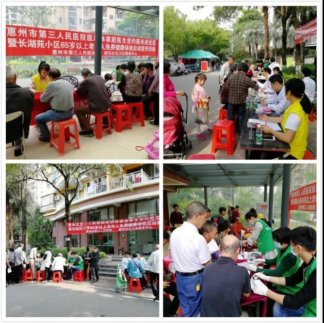 2018年3月30日、31日上午,為提升家庭醫(yī)生簽約服務(wù)質(zhì)量,提高65歲以上老年人健康體檢到檢率,惠州市第三人民醫(yī)院醫(yī)聯(lián)體家庭醫(yī)生簽約服務(wù)進(jìn)社區(qū)暨長(zhǎng)湖苑小區(qū)65歲以上老年人免費(fèi)健康體檢啟動(dòng)宣傳活動(dòng)在長(zhǎng)湖苑一、二、三期小區(qū)順利舉辦,各位老街坊積極參與跟蹤隨訪和??谱稍?。