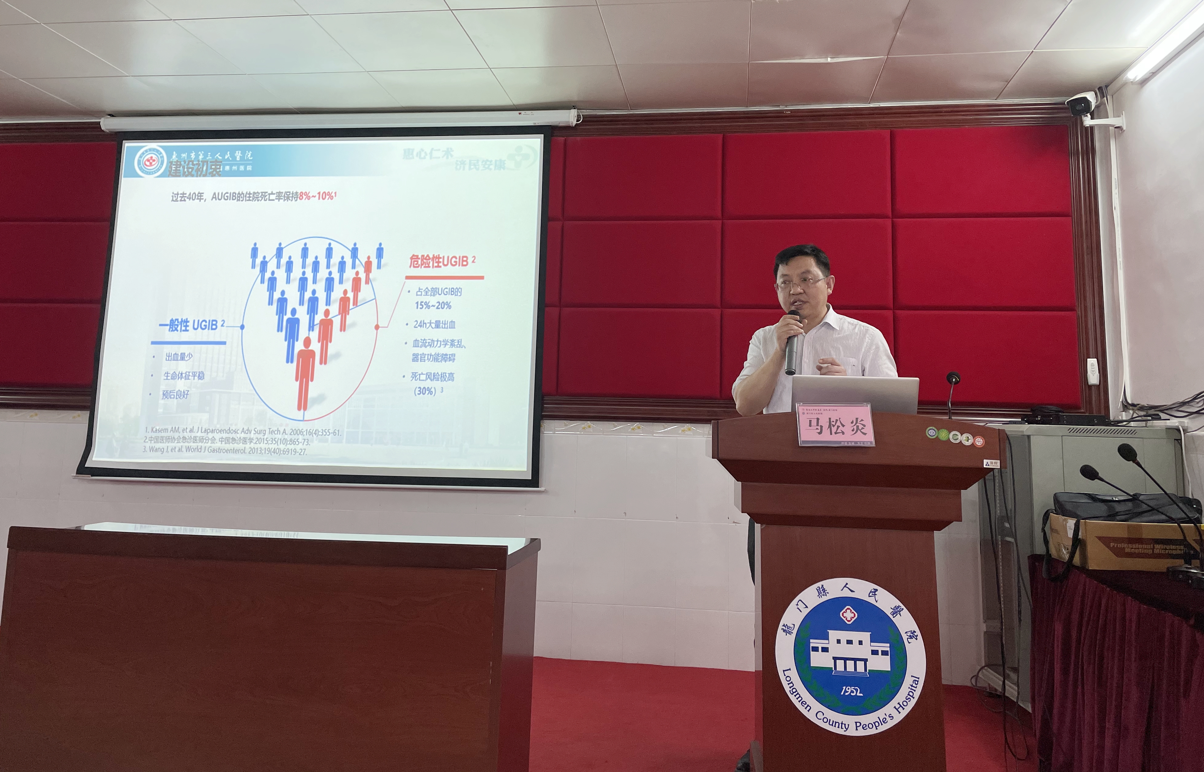 馬松炎主任為該院醫(yī)護(hù)人員作題為《浴“血”同舟,止“血”有術(shù)》的專題講座,講座內(nèi)容國(guó)內(nèi)外指南及專家共識(shí)接軌,對(duì)促進(jìn)疾病診治的規(guī)范化、個(gè)體化起到積極的作用。馬松炎主任還深入該院消化內(nèi)科病房進(jìn)行查房和指導(dǎo),查看疑難及典型病例,讓龍門縣人民醫(yī)院消化內(nèi)科同仁受益匪淺。