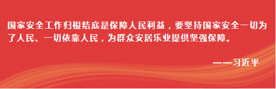 2021年4月15日是第六個全民國家安全教育日,今年的活動主題為“踐行總體國家安全觀,統(tǒng)籌發(fā)展和安全,統(tǒng)籌傳統(tǒng)安全和非傳統(tǒng)安全,營造慶祝建黨100周年良好氛圍”。