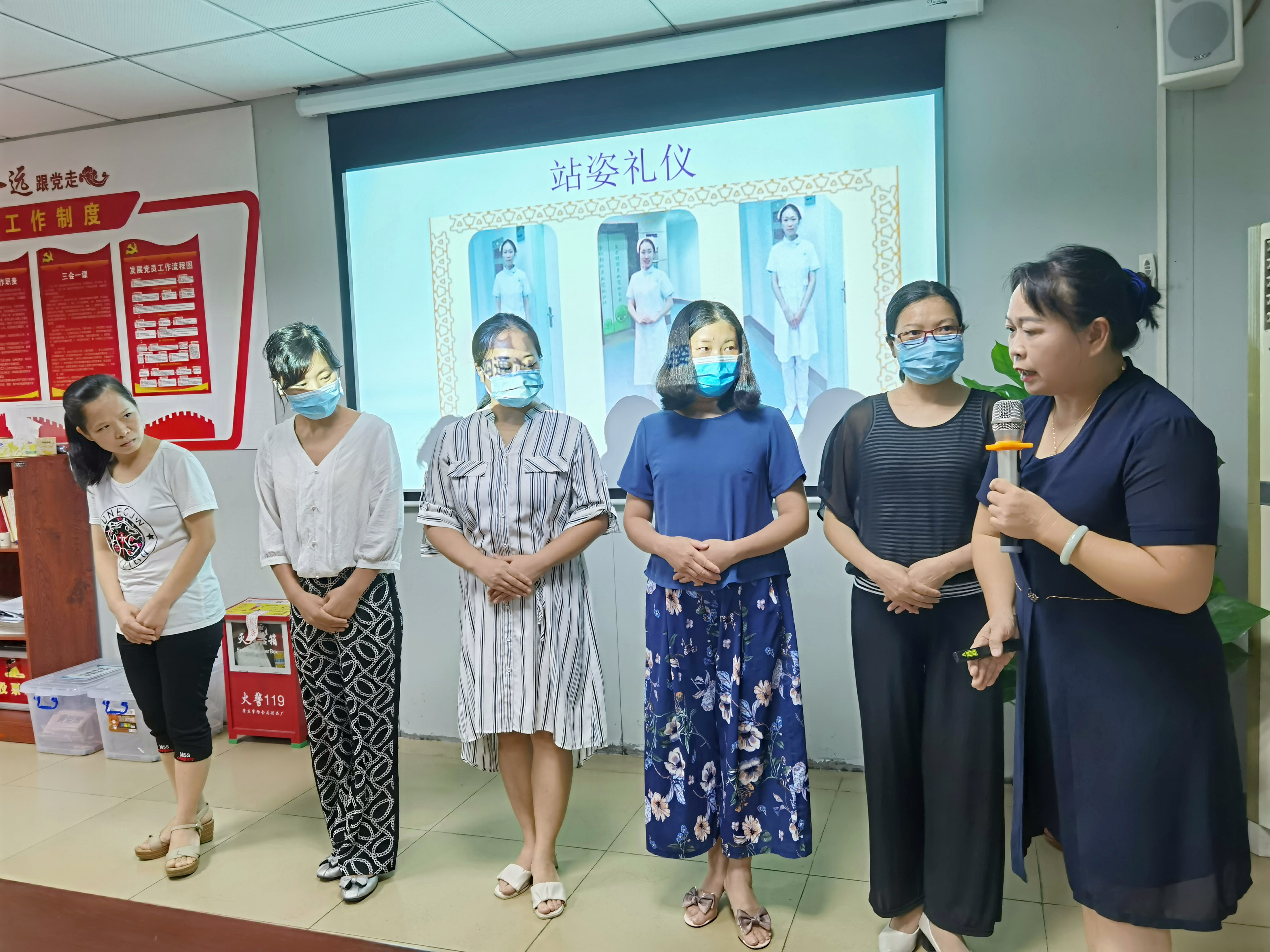嗯?這是在做什么?練形體嗎?哦,原來是門診部的護(hù)士在上服務(wù)禮儀課。