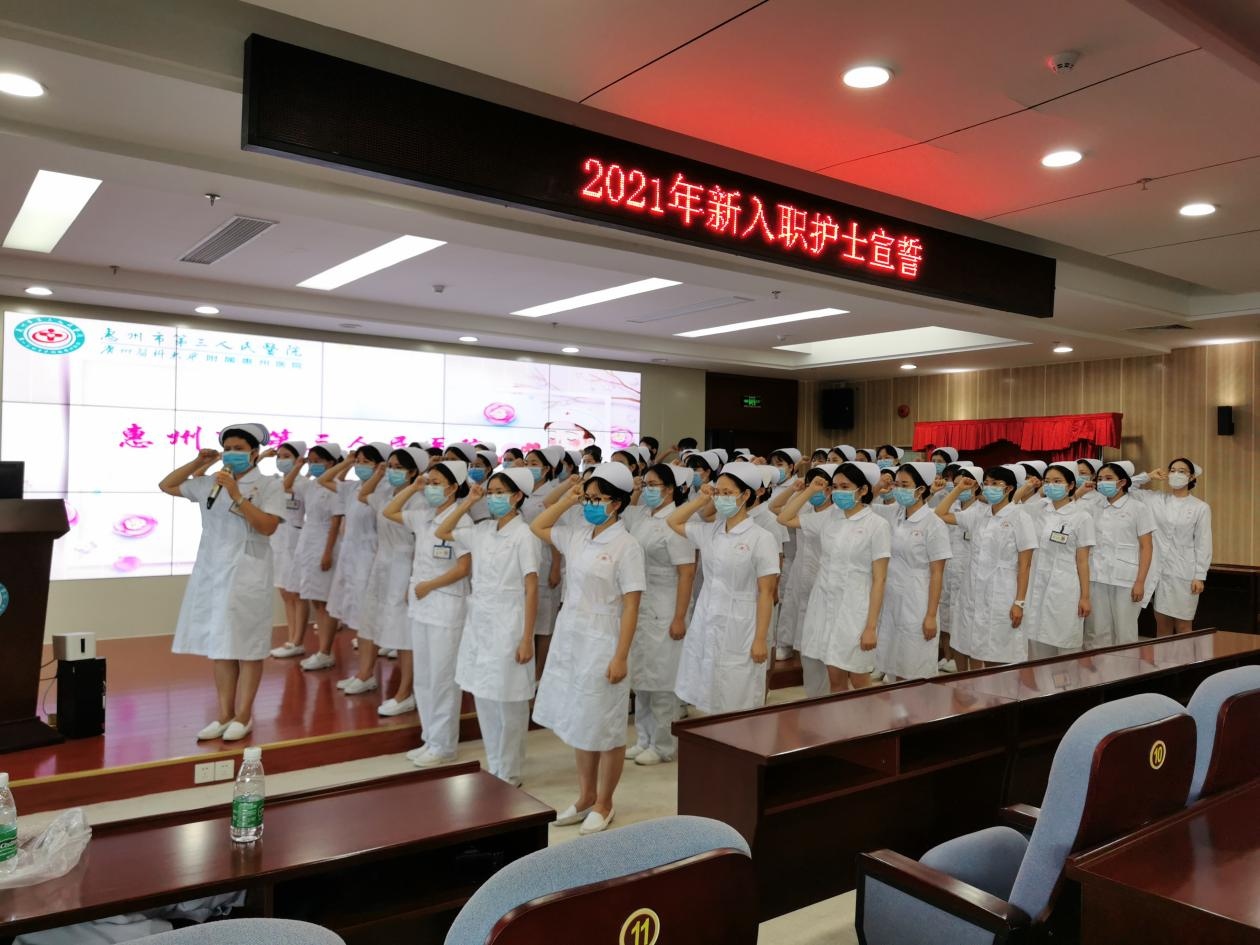 “我宣誓,接過前輩手中的蠟燭,燃燒自己,照亮他人,把畢生精力奉獻(xiàn)給護(hù)理事業(yè)。”隨著新入職護(hù)士誓言,2021年惠州三院新入職護(hù)士理論培訓(xùn)圓滿結(jié)束。